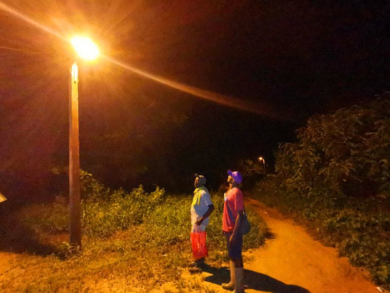 當地時間5月22日,隨著蘇里南共和國自然資源部部長阿金博多在投產儀式現場按下送電按鈕,遍布整個胡亞巴村的路燈開始亮起,中國電建在蘇里南實施的首個離網光伏項目正式投產運行。蘇里南共和國國會議員阿芙索娃、中國電建加勒比區域代表及項目部全體人員、當地村民出席投產儀式,蘇里南各主流媒體對投產儀式進行了報道。