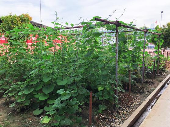 在吃的法則里,風味重于一切。蘇蘇人從來沒有把自己束縛在一張乏味的食品清單上。大廚懷著對食物的理解,在不斷的嘗試中尋求著轉化的靈感。工地的工作枯燥乏味,宿舍辦公室施工現(xiàn)場,每天都是三點一線。一邊要忍受著因語言不通而和監(jiān)理業(yè)主造成的誤會,一邊還要協(xié)調(diào)分包商的干活消缺,一天下來往往只顧得上胡亂扒上兩口飯,至于可口與否已經(jīng)不在味蕾的工作范圍之內(nèi)了。大廚看在眼里急在心里,長此以往,不僅工作效率得不到保證,對員工的身心健康也是一大挑戰(zhàn)。他每天都在思考,如何才能讓現(xiàn)場員工吃得好吃的開心,還能吃出家鄉(xiāng)的味道。于是,蘇蘇后院的菜園子就這么悄悄地走來了。